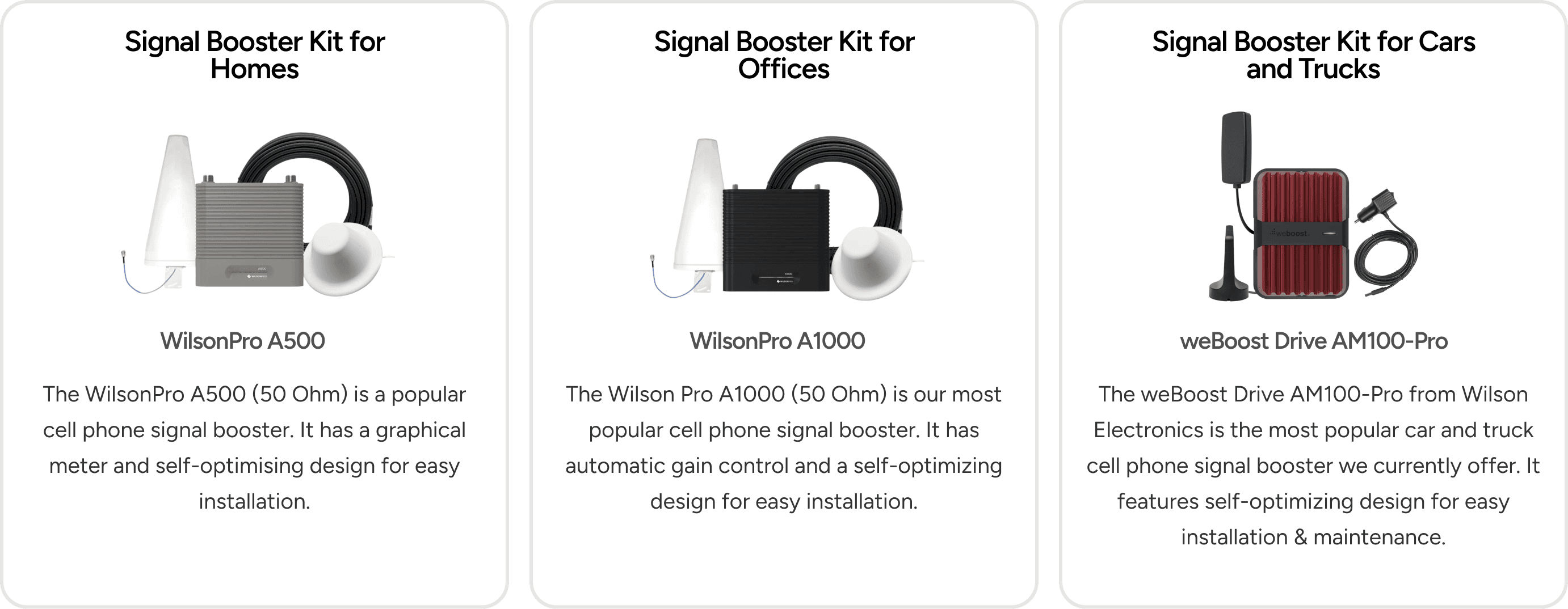 Professional-grade signal boosters, antennas, cabling, and accessories selected for your environment.