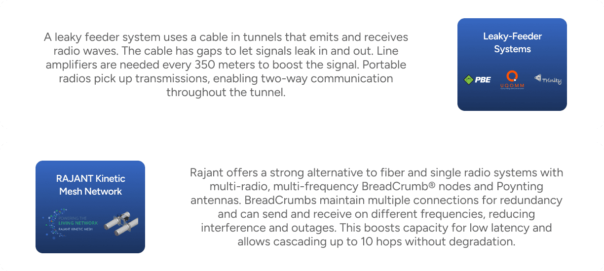 Reliable communication in underground environments is not optional — it is essential for safety, coordination, and operational efficiency. Traditional communication systems often struggle below ground due to signal interference, structural barriers, and complex terrain. Without the right infrastructure, teams face delays, safety risks, and reduced productivity.